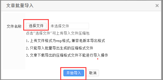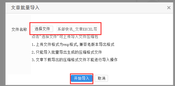 2.2、弹出的对话框单击“选择文件”—>“开始导入”。