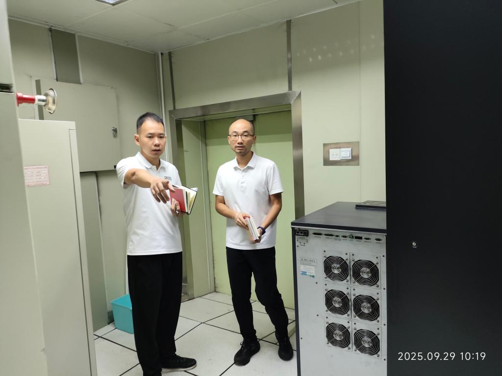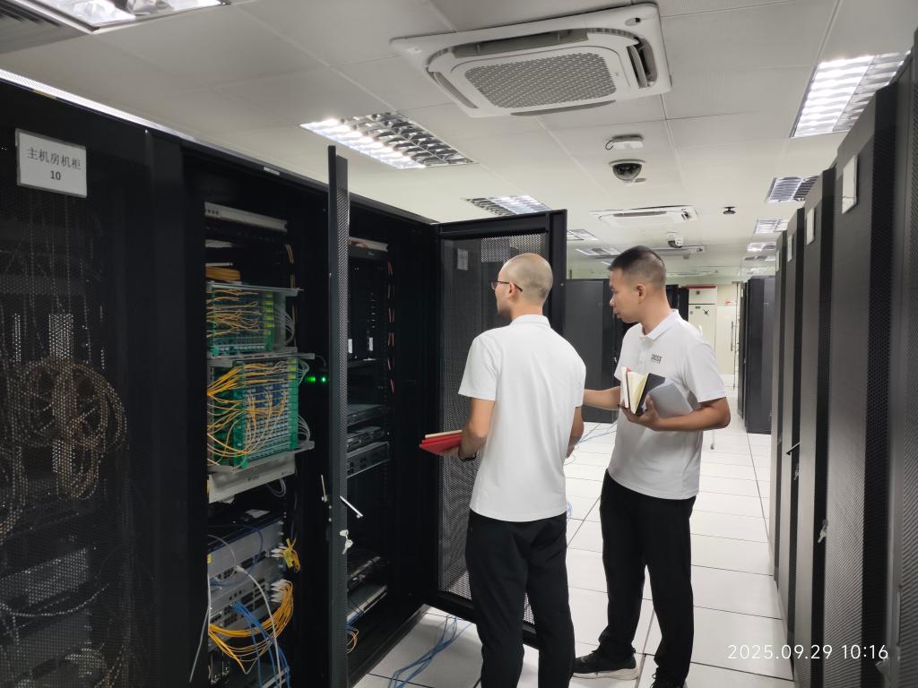 9月29日,信息与网络中心开展国庆节前安全检查工作。周培根同志带领技术人员对行政楼网络中心机房进行了全面安全检查,重点排查设备运行、消防安全及环境管理情况。检查过程中,信息与网络中心工作人员严格对照安全规范,逐项核查动环监控系统、机房UPS不间断电源、空调系统、网络机柜等关键设备的运行状态,检查过程中还对接下来中心机房的升级改造进行规划统筹,以进一步提升中心机房的安全性和智能化。