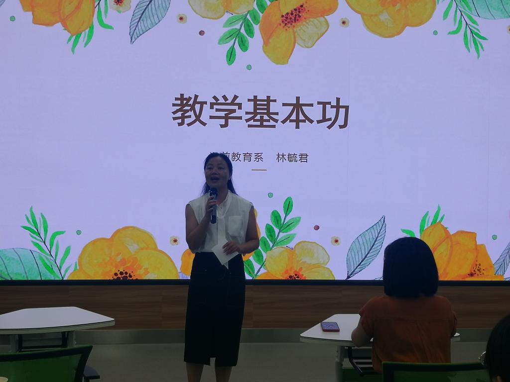 学前系主任林毓君老师从关爱出发,教新老师们授课过程中应该如何发声、如何预防教师咽喉方面的职业病,并通过不同的情境展示了不同的发声方法,体现了扎实的教学基本功。