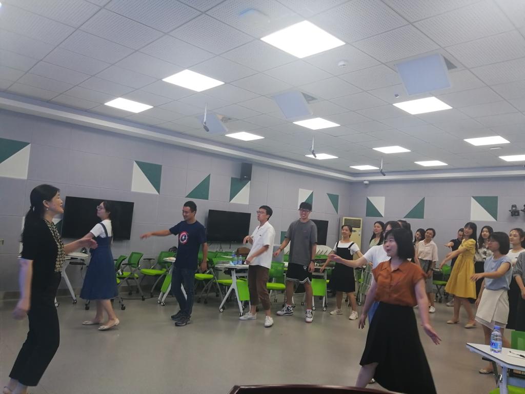 在培训会中,新老师们在教务处长葛思华的带领下进行了欢乐的舞动体验活动,熟悉了彼此,在认真的学习中放松了心情,第一期的培训取得圆满成功。