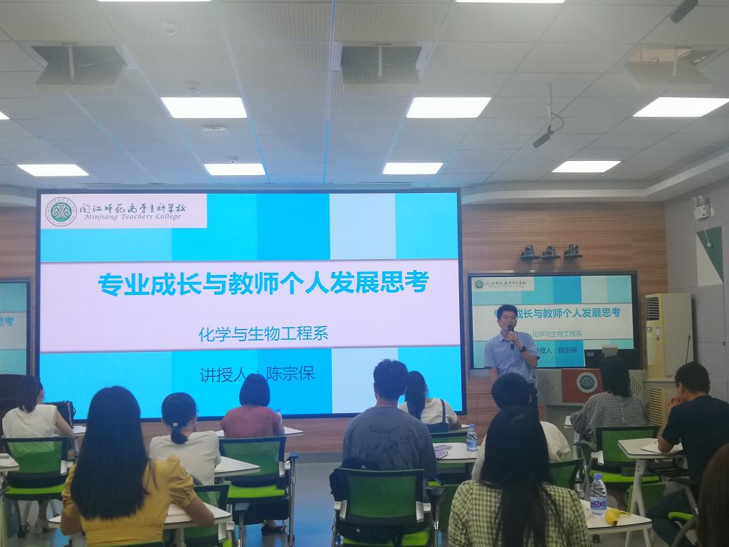 化工系主任陈宗保以自身经历讲述一个教师专业成长与个人发展辩证关系,提出做“有理想信念、有道德情操、有扎实学识、有仁爱之心”的“四有”好老师,为发展具有中国特色、世界水平的现代教育,培养社会主义事业建设者和接班人作出更大贡献。