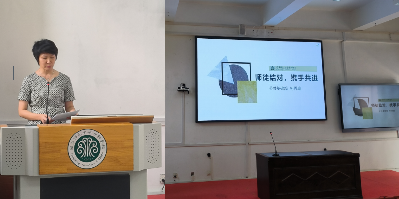 外语商贸学院的韩静老师代表新教师发言,她表示要向老教师们虚心请教教育教学技能,积极参加教育科研的研究,继承和发扬老教师的从教精神,无私奉献,努力拼博,把爱心和感情投入到教学工作中去。