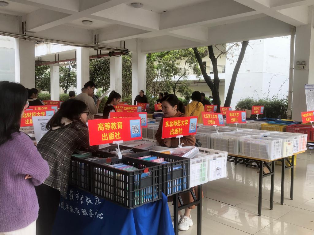 为进一步提升和促进我校教材选用与建设工作,搭建学校与出版社之间高效快速的沟通平台、服务平台,为我校教师编写、出版教材提供更多的信息与渠道。2023年4月6日,我省教材经销商联合体在我校举办“2023年第二届福建省高校教材联合巡展(闽江师范高等专科学校)”活动。参展出版单位有:高等教育出版社、机械工业出版社、科学出版社、人民邮电出版社、电子工业出版社、化学工业出版社、清华大学出版社、北京大学出版社、中国人民大学出版社、厦门大学出版社、东北财经大学出版社、外语研究和教学出版社、上海外语教育等30家大型、专业出版社。
