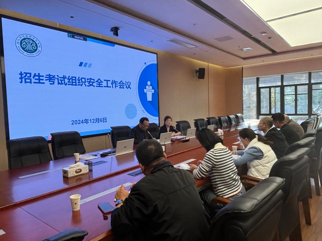 会议指出,我校负责福建省高职分类考试招生职业技能测试(美术与设计类)、艺术学院五年专招生面试、3+2专本贯通转段考试、全国中小学教师资格考试、全国计算机等级考试、大学英语四六级、专升本考试报名和现场确认等多项招生、社会考试。日常工作中,考试接连进行,形势复杂,任务艰巨,各相关职能部门一要提高政治站位,在思想上高度重视,增强考试工作的责任感、使命感和危机感,完善考试安全管理制度,进一步提升考试工作标准化、正规化和专业化水平;二要认真履行岗位职责,对梳理出的风险隐患逐一排查,各部门不仅要各负其责、各司其职,更要通力合作、密切配合,共同筑牢考试安全藩篱;三要建立健全防控体系,在考试各环节工作中,强化技防、人防、物防相结合,严把人员选聘与培训、考生入场检查、考试重要时间节点、试卷印制、密封、运送、回收等重要关口,严肃考试纪律,杜绝高科技作弊,全力维护考试全过程公平、公正;四要提升应急处突能力,细化应急预案,完善突发事件应急处置机制,并开展实景演练,确保处置快速、精准、规范、有序;五要优化考生服务保障,坚持以生为本,强化责任担当,聚焦精准帮扶,对特殊考生因需施策,切实每个细节每项工作抓到位,为考生提供暖心服务;六要加强舆情研判和引导,强化态势感知,加强负面舆情管控,及时回应社会关切问题,营造考试良好氛围。