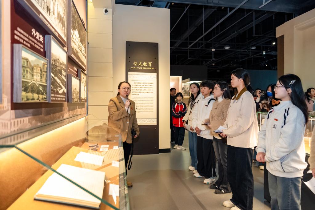 闽江师范高等专科学校马克思主义学院的金雨青老师在“船政新式教育”展览处,为大二师范专业的学生们上了一堂生动的大学《习近平新时代中国特色社会主义思想概论》课。课程围绕《教育、科技、人才一体推进的船政之道》展开,金老师通过丰富的史料和生动的讲解,带领学生们穿越时空,深入了解船政学堂的历史背景与独特贡献。她指出,船政学堂不仅开创了中国新式教育的先河,更通过教育、科技、人才的紧密结合,推动了近代中国的现代化进程。学生们在金老师的悉心指导下,不仅深入了解了船政学堂的历史背景和独特贡献,更在互动讨论中碰撞出了关于新时代教育教学改革的火花。通过金老师的生动讲解,学生们深切感受到了船政精神的力量,纷纷表示将立足师范专业发展,积极投身教育事业,为国家的现代化建设添砖加瓦。