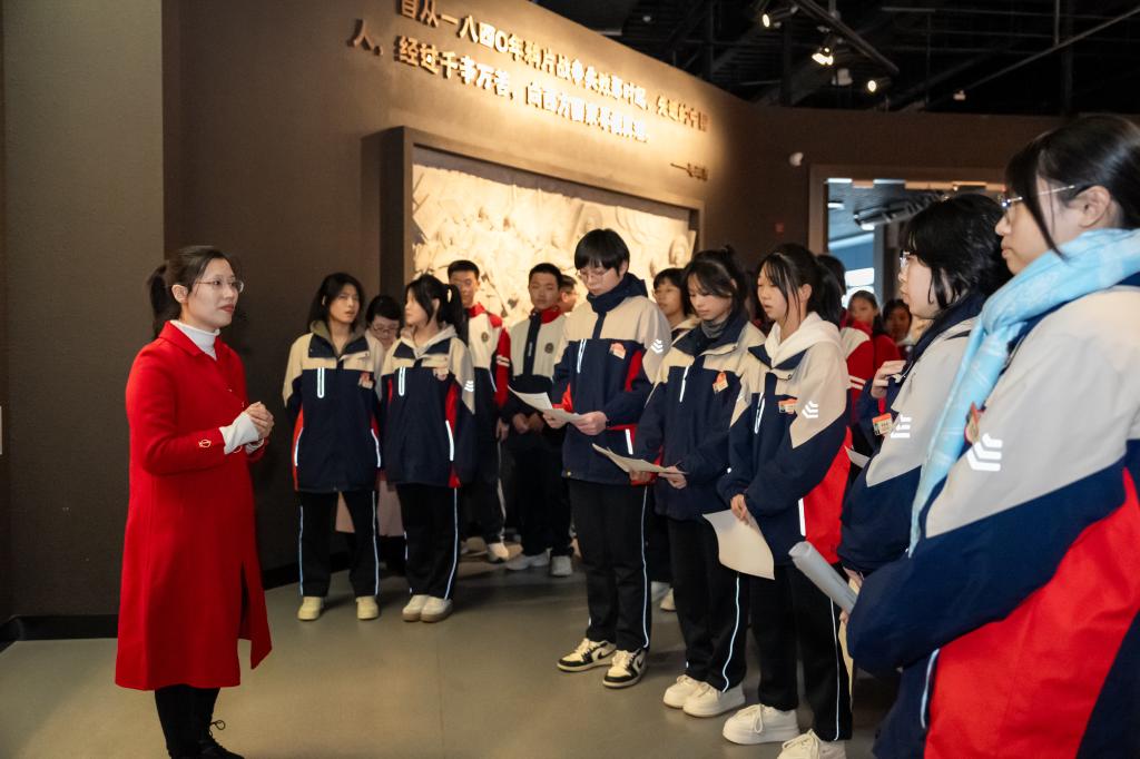 在场馆解说员的带领下,来自福州财政金融职业中专学校、福州第八中学、闽江师范高等专科学校、福州第七中学、福州市仓山区第六中心小学的师生依次在中国船政文化博物馆内五个不同地点,开展“场馆里的思政课”现场教学。
