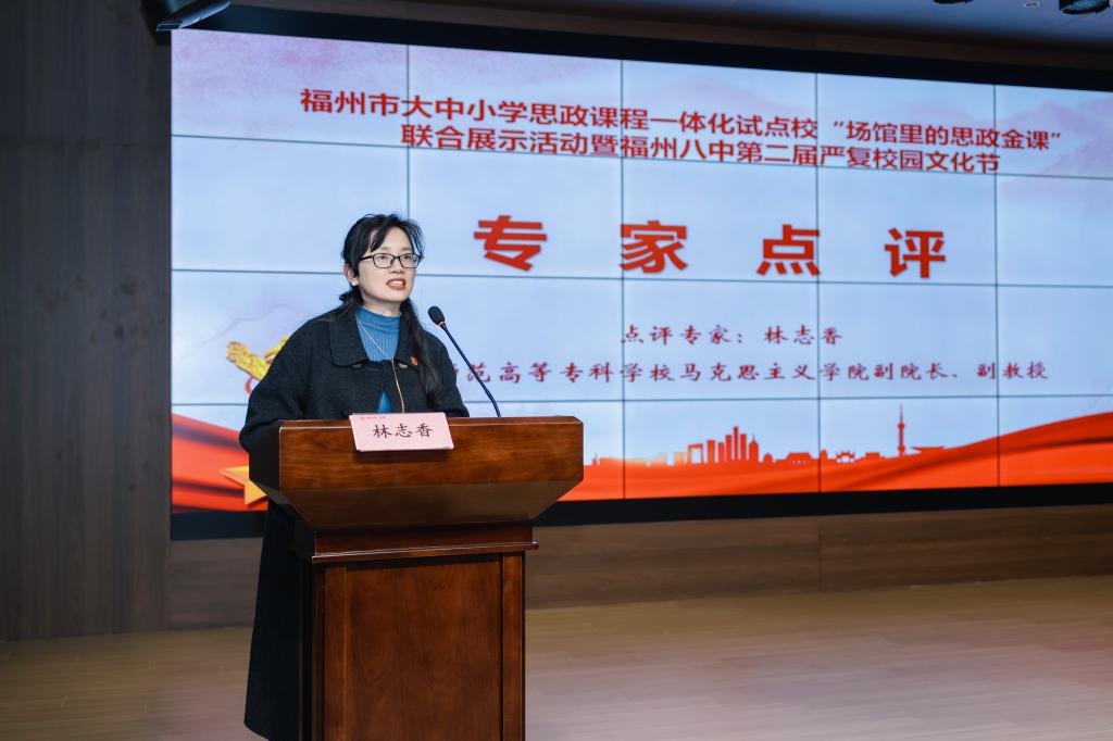 福州教育研究院研究员、高级教师雷劲、我校马克思主义学院副院长林志香以及福建船政文化管理委员会党组书记、主任刘江远等三位专家对各学段的场馆现场教学进行全面而深入的点评。他们的点评不仅为各学段的思政课教学工作指明了方向,更为所有的思政课教师提供了宝贵的启示和思考。