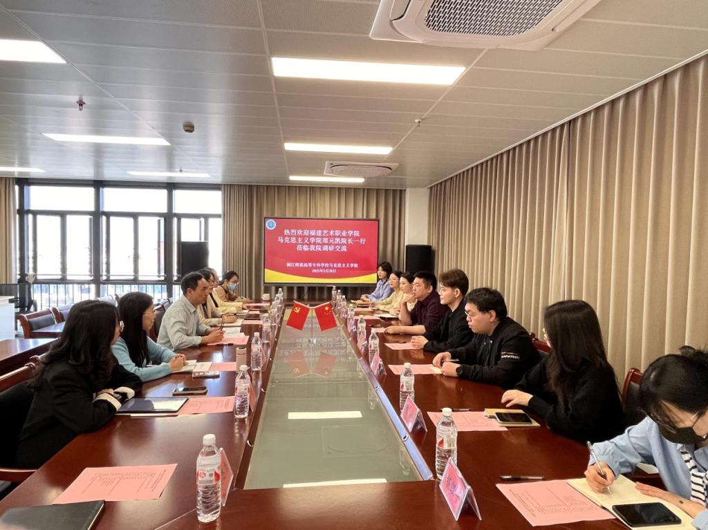 3月26日上午,福建艺术职业学院马克思主义学院院长郑元凯一行莅临我院调研交流。马克思主义学院院长洪书源热情接待了郑元凯一行,学院各教研室主任、学院秘书等参加交流。
