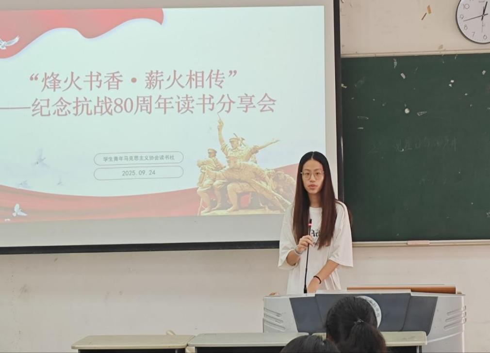 9月24日中午,学生青年马克思主义协会读书社在旗山校区教学楼1010 教室举办了“烽火书香・薪火相传”——纪念中国人民抗日战争暨世界反法西斯战争胜利80周年读书分享会。