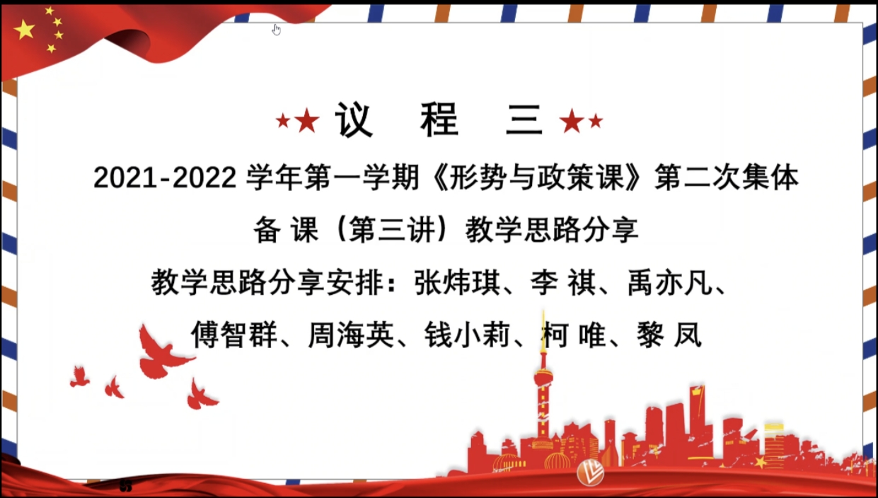 9月26日,“形势与政策”课教研室在腾讯会议召开本学期第二次教研活动,“形势与政策”课教研室全体教师参与。
