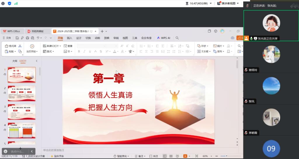 2月14日上午,“概论”教研室开展线上集体备课,本次集体备课围绕导论和第一章内容展开。林志香老师针对“导论”部分深入分析学情,围绕教学内容进行设计,开发各种学习资源,辅助学生突破导论重难点,为后续的学习打下坚实的基础。在第一章的讲解中,邹萌结合当下热门的AI工具,分享了独特的教学思路,引导学生从生活实际中感悟中国特色社会主义道路的真理性与科学性。她提出采用互动式教学方法,如小组讨论、案例分析等,旨在培养学生的主动思考和团队协作能力。随后,老师们针对教学疑难问题展开了热烈讨论,大家各抒己见,畅所欲言。
