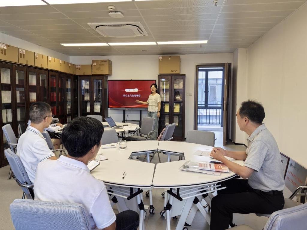 主讲教师穆亮红针对第三章“社会主义改造理论”说课。穆亮红深入分析教学内容与学情特点,重点梳理了章节教学逻辑思路,为后续章节的深入学习奠定了坚实基础。紧接着,翁文纯围绕教学目标设计了多样化教学活动,提供鲜活案例拓展教学思路。最后,老师们探讨了本章教学疑难问题。