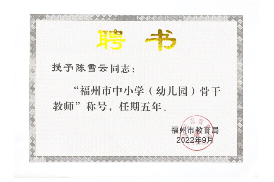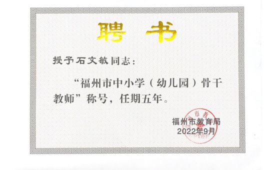 根据《福州市教育局关于公布2021年福州市学科带头人和骨干教师认定名单的通知》(榕教人〔2022〕16号)文件精神,在经过所在单位推荐、人事处审核推荐,市教育局组织专家评审、业务考核、公示等层层评选程序后,我校附属实验幼儿园吴敏园长被认定为幼儿教育学科的福州市中小学(幼儿园)学科带头人,附属实验小学石文敏、陈雪云两位教师被认定为小学语文、小学英语学科的福州市中小学(幼儿园)骨干教师。