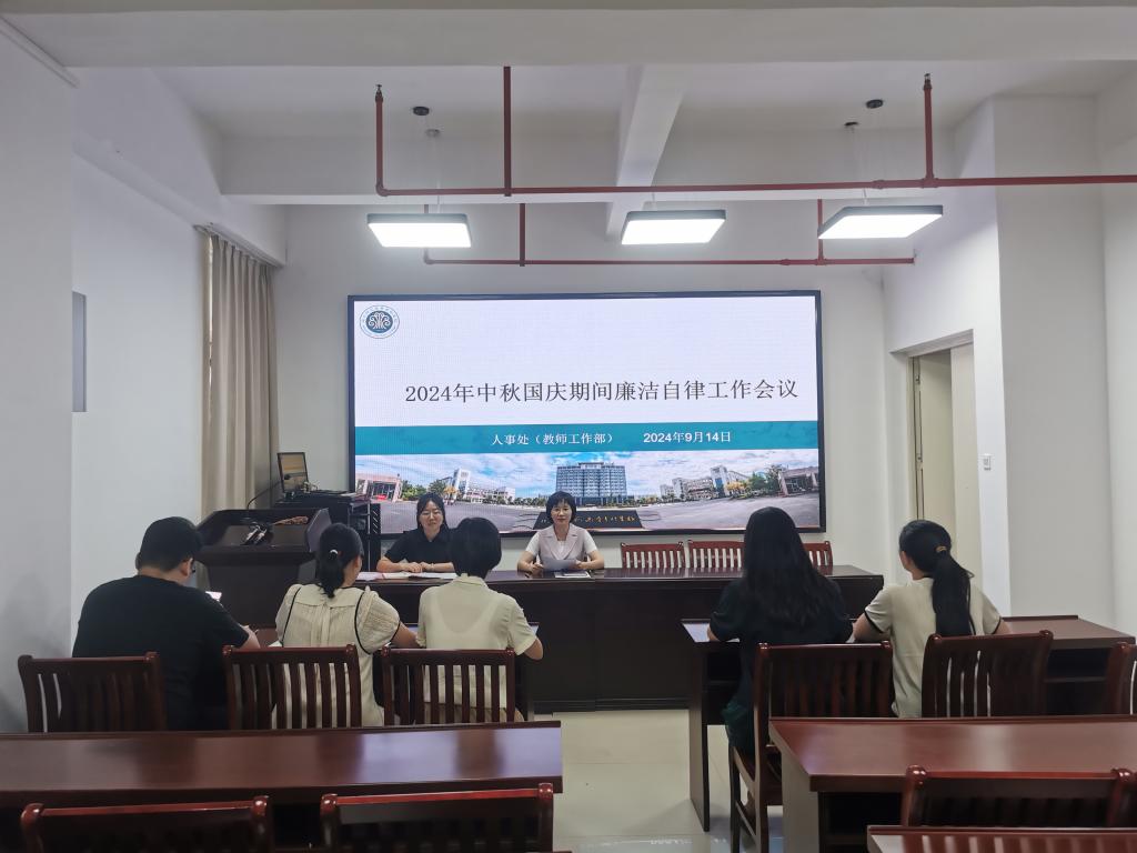 为进一步严明纪律,强化纪律规矩意识,教育引导支部党员筑牢思想防线,营造风清气正的节日氛围,近日,人事处(教师工作部)党支部开展2024年中秋、国庆节前廉政谈话会。会议由支部书记吴春艳主持,支部全体党员参加。