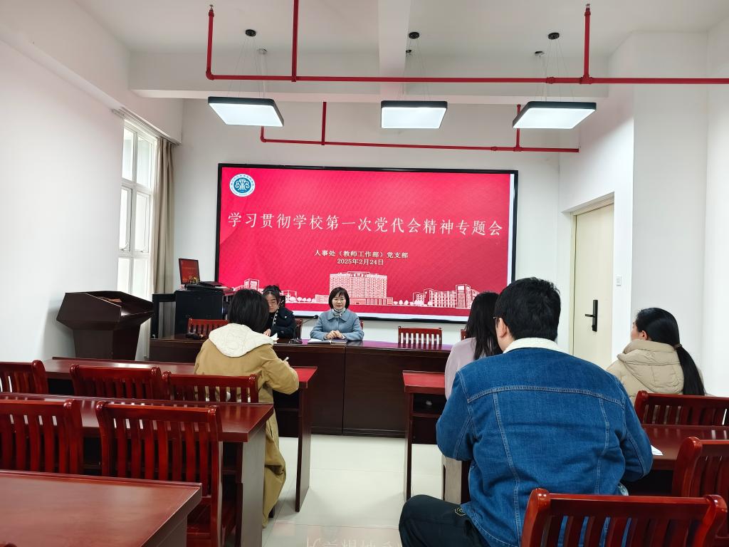 2月24日,人事处(教师工作部)党支部召开全体党员会议,专题学习传达学校第一次党代会精神,并就宣传贯彻落实学校第一次党代会精神进行了具体安排。会议由支部书记吴春艳主持。