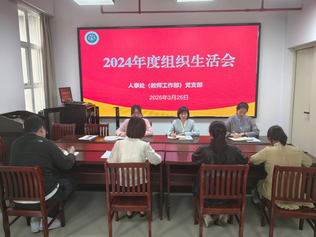 为深入学习贯彻习近平新时代中国特色社会主义思想和党的二十大、二十届二中、三中全会精神,进一步加强党支部的组织建设,提高党员的思想觉悟和党性修养,增强党组织的凝聚力和战斗力,3月25日人事处(教师工作部)党支部召开2024年度组织生活会暨民主评议党员会议。会议由支部书记吴春艳主持,全体党员参加。