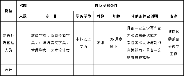 6.岗位所需的其他条件:35周岁以下;本科及以上学历;有教育工作经验者优先。具体条件详见表1。