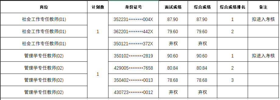 根据招聘公告的要求,现将考生综合成绩进行公示,公示时间2025年5月30日至6月6日。在此期间内,欢迎群众以来电、来信、来访的形式向闽江师范高等专科学校反映情况。