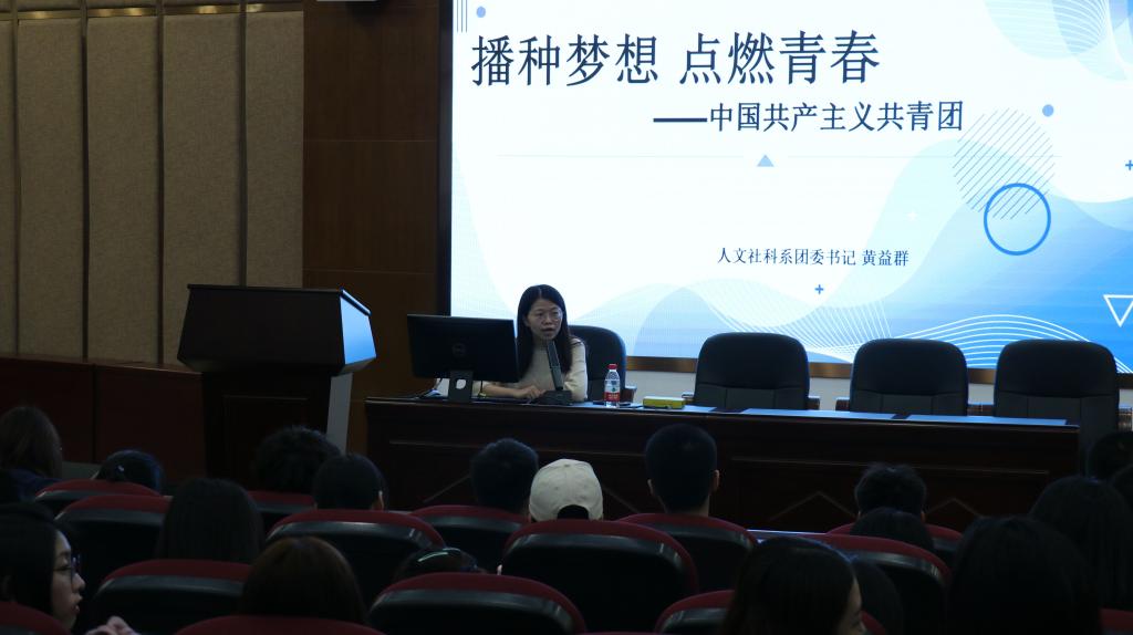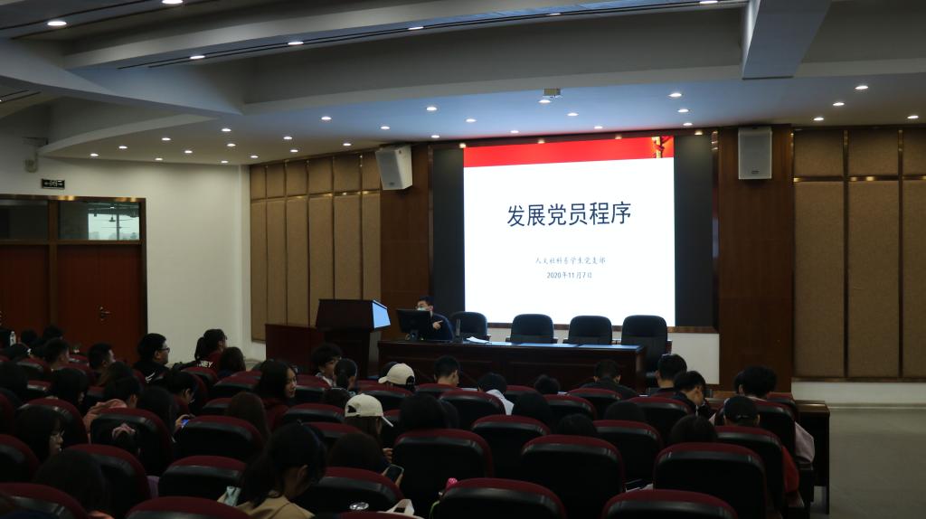 为促进思想政治工作,提升20级新生思想水平和学风建设。2020年11月7日人文社科系全体新生于一号楼学术报告厅开展了入学教育专题讲座,人文社科系邀请到人文社科系团委书记黄益群老师、学生党支部书记叶懿蛟老师从入党过程、团员工作、志愿汇、第二课堂和评优评先进行解读。