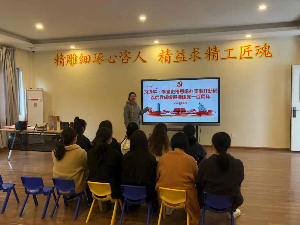 会上,余晶同志首先带领大家学习了习近平总书记在党史学习教育动员大会上的发言内容,强调在全党开展党史学习教育,是党中央立足党的百年历史新起点、统筹中华民族伟大复兴战略全局和世界百年未有之大变局、为动员全党全国满怀信心投身全面建设社会主义现代化国家而作出的重大决策;其次,为大家解读了中共中央印发《中国共产党宣传工作条例》,指出宣传工作是党的一项极端重要的工作,是中国共产党领导人民不断夺取革命、建设、改革胜利的优良传统和政治优势。同时,带领大家学习了省管干部学习贯彻党的十九届五中全会精神研讨班开班式暨省委开展“再学习、再调研、再落实”活动动员会上的内容。党员教师们纷纷发表心得体会,交流本次学习的感悟和想法。