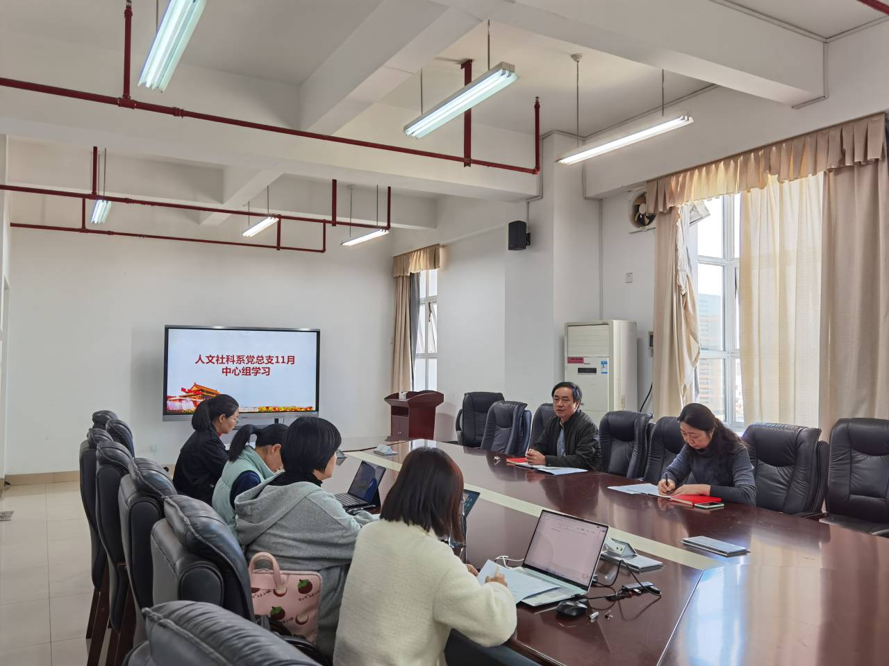 2021年11月10日,人文社科系党总支在旗山校区七楼会议室召开11月份中心组扩大学习会议。人文社科系党总支委员、所属党支部书记、系主任、教研室主任参加了本次会议,会议由党总支书记洪书源主持。