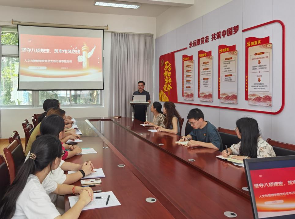 为进一步深入贯彻中央八项规定精神学习教育,强化党员干部作风建设,2025年6月19日,闽江师范高等专科学校人文与管理学院党总支开展专题党课学习活动。学院党总书记以《坚守八项规定,筑牢作风防线》为题,为全体党员带来了一堂内容丰富、意义深刻的党课。