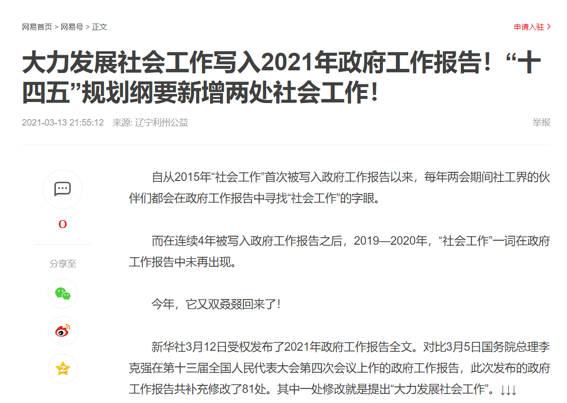 4.大力发展社会工作写入2021年政府工作报告!“十四五”规划纲要新增两处社会工作!