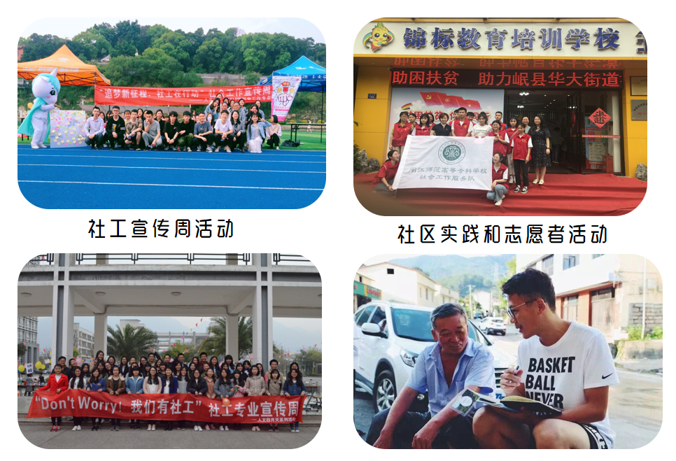 二是暖暖社工同辈互相支持。社会工作专业是一个非常温馨的大家庭,来到这里,您不仅获得社会工作职业技能,还有社会工作兄弟姐妹互相支持,携手成长。接下来我们就看看我们亲爱的学姐学长们的风采吧!