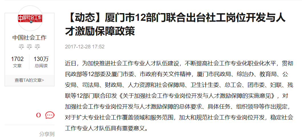 图13厦门关于社会工作激励政策