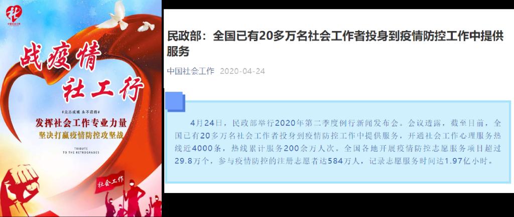 2020年新冠肺炎疫情防控中,各地社工投入到战“疫”第一线,为社区居民、特殊困难群体和隔离群众提供个案咨询、心理减压、精神慰藉和转介等服务。