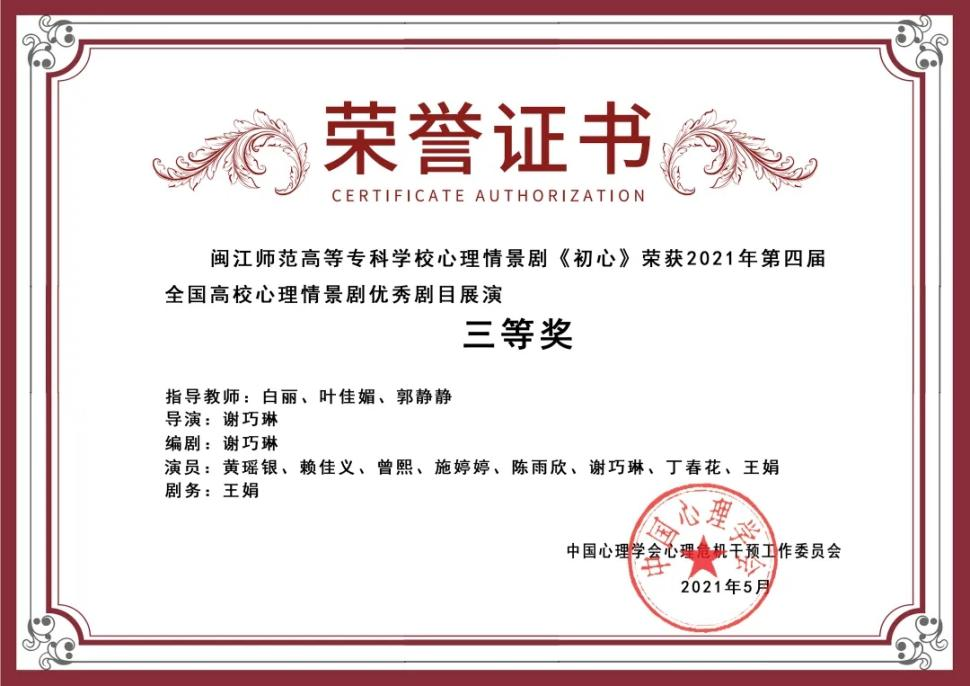 简介:中共党员,育婴师初级职业资格证等技能证书。被福建致和社会组织孵化与创新中心评为2021年度“优秀实习生”