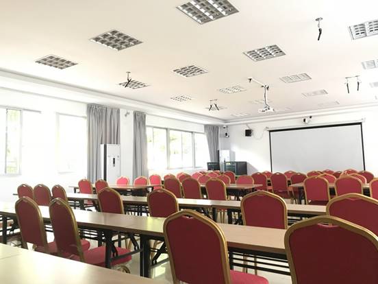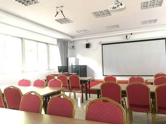 本实训室面积约为90平方米,利用现代的科技手段还原和再现旅游地实景,让教师和学生在通过软硬件搭建起来的仿真环境内完成专业教学和训练,提高学生的实践能力。同时,还可以作为导游公共实训基地的培训中心,面向社会开放,进行导游岗前、导游道德素质等项目培训。