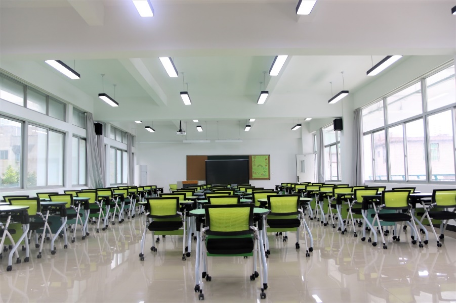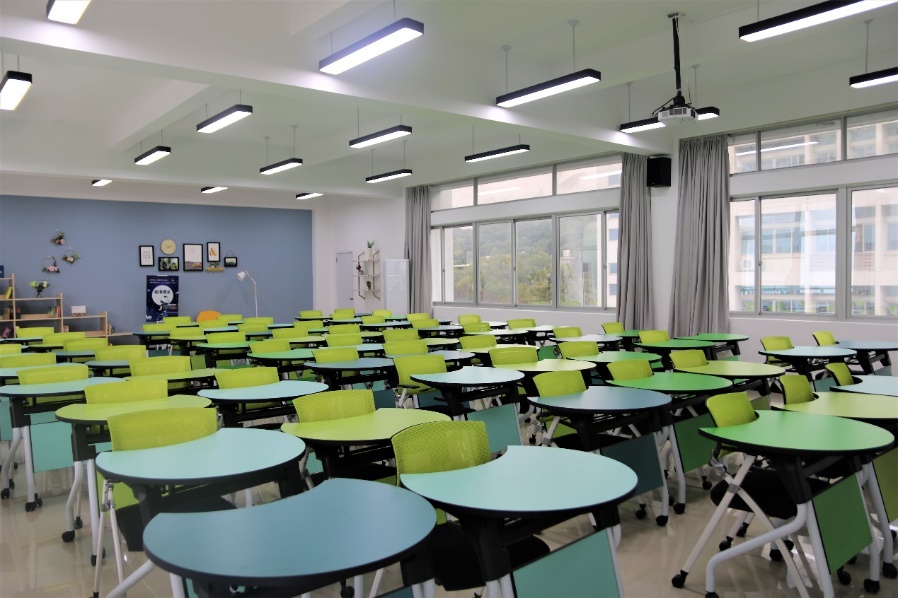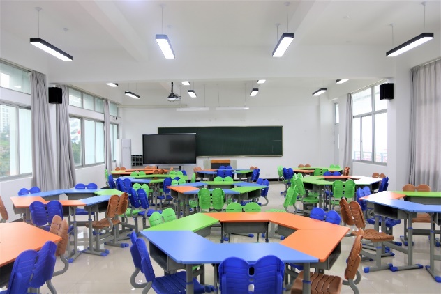 这是开展协作学习/分组教学的圆桌教室,方便同学们进行小组交流互动。