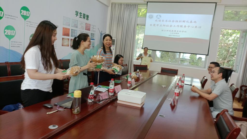6月3日,长乐社会组织孵化基地项目负责人雷小辉、东莞市正阳社会工作服务中心刘华城总监、东莞市正阳社会工作服务中心行政总监夏彩云一行来我校参观并洽谈校社合作事宜,人文社科系陈勤副主任(主持工作)、社会工作专业余晶老师、张潇颖老师、叶佳媚老师热情接待了参访人员。