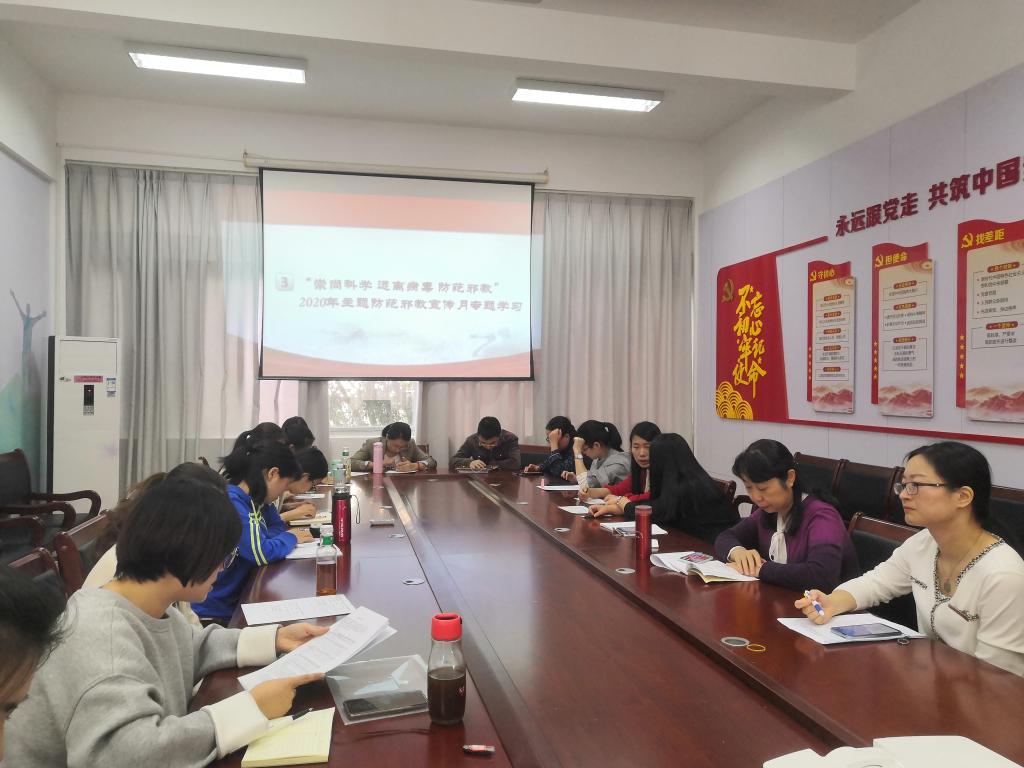 2020年11月4日下午,人文社科系在仓山校区3楼会议室开展“十九届五中全会精神、习近平总书记近期讲话精神和防范邪教宣传月”专题学习活动。本次会议由系副主任陈勤主持,全体教职工参加。