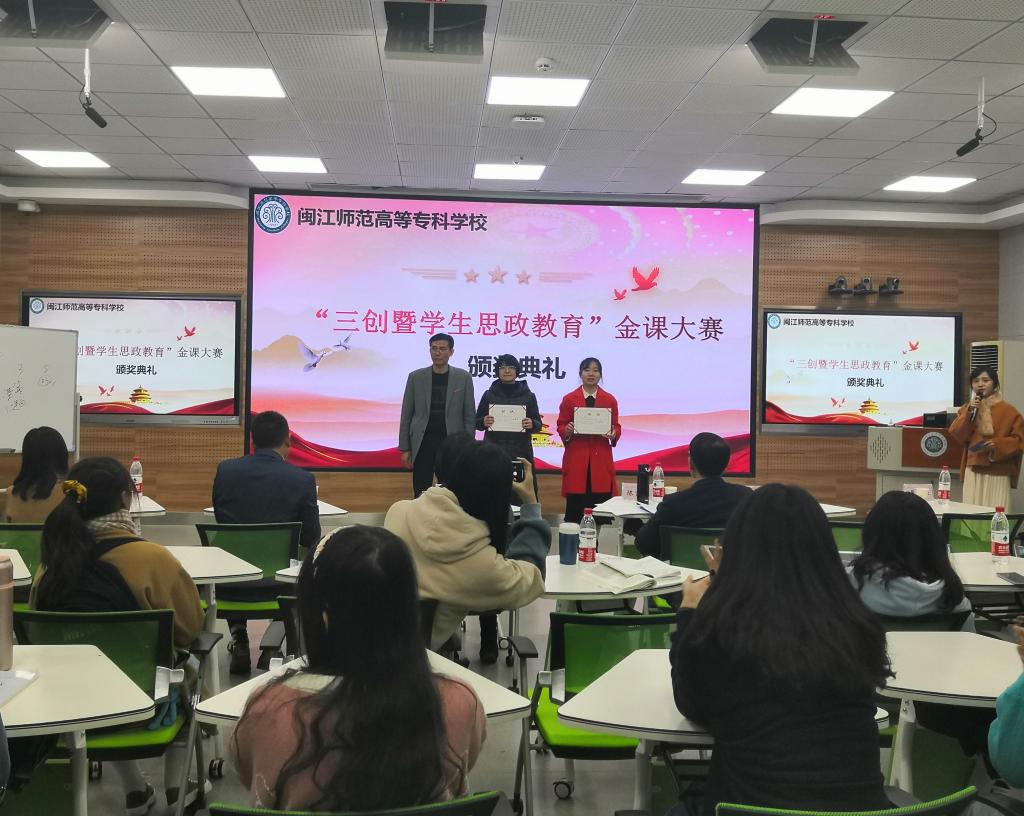 由闽江师范高等专科学校主办,闽江师范高等专科学校学生工作处和三创学院承办的首届“三创暨学生思政教育”金课大赛于12月16日举行,来自各系部的参赛选手和观摩教师齐聚教学楼3016,激烈的比赛在掌声中拉下帷幕。