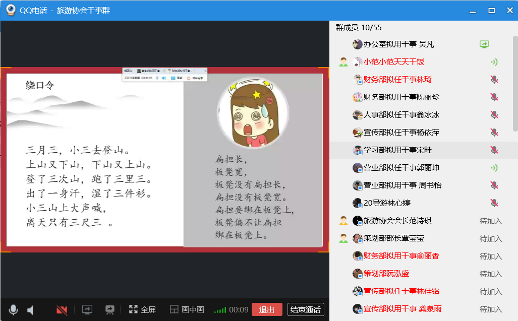活动开始,首先由郭丽坤进行热场活跃气氛,以“使用普通话的好处”为题与同学们展开激烈探讨,同学们各抒己见向大家展示普通话的价值。紧接着,进入了绕口令和生僻字识音两个环节,整个活动过程生动活泼。
