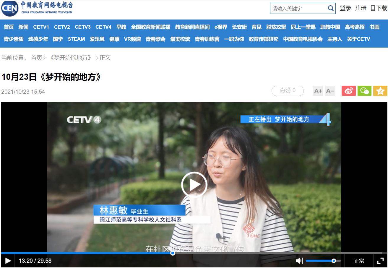 后期经过层层选拔,人文社科系社会工作专业的“师徒结对 温情相传”作为职业教育提质培优增值赋能典型案例在2021年10月23日中国教育电视台职业教育频道品牌栏目《梦开始的地方》进行集中展播。