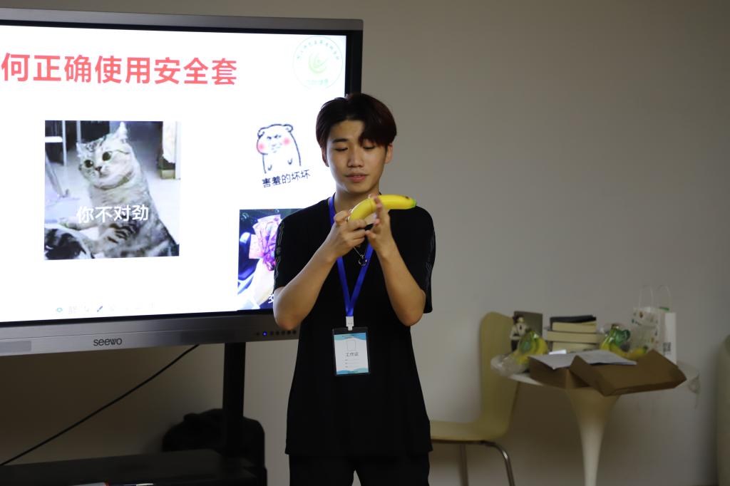 本次活动通过以同伴教育和讨论的形式,发起对性的理解、爱情与性等深层次的问题,有助于青年人获得更多信息。同时开始涉及最为敏感的话题:性与性行为。在活动中,主持人提出问题并科普性与爱的话题,并强调爱是的基础,性使爱情得到升华,通过用香蕉模拟生殖器官亲自亲手学会如何使用安全套,明白安全套的重要作用。模拟演示环节中,同学们目不转睛地看着主持人的演示,并认真倾听积极参与,体验了如何正确使用安全套。