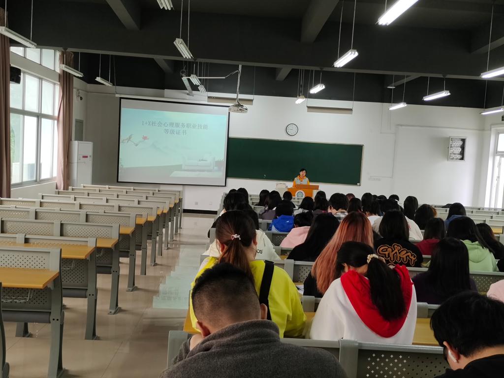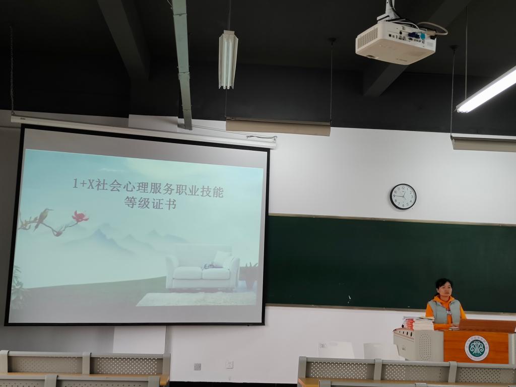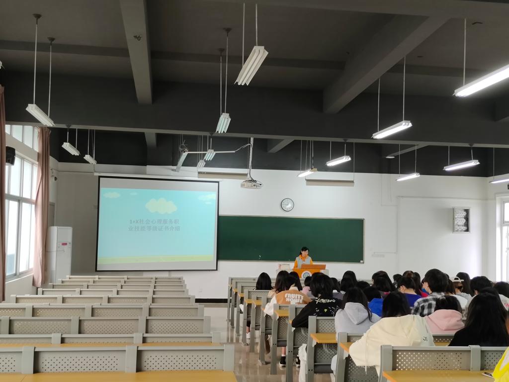 为深入贯彻《国家职业教育改革实施方案》精神,高质量开展大数据平台运维职业技能等级证书的试点工作,提升试点院校教师实施教学、培训和评价的能力,全面提高证书的教育培训质量,2021年11月8日,人文社科系谢姗姗老师,以“1+X社会心理服务职业技能等级证书”为主题,心理咨询专业学生参加此次讲座。