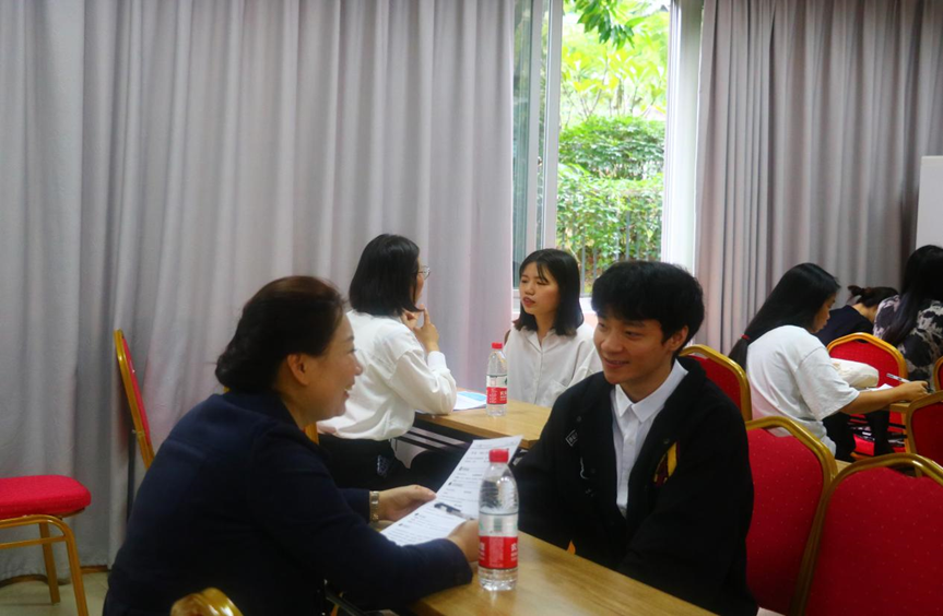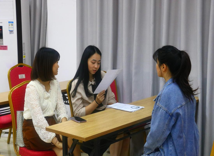 10月29日,心意旅行定制入校宣讲,负责人陈冰、林小翠分别介绍了公司基本情况及招聘岗位的情况,并详细认真地对解答同学们的疑问。紧接着,现场开展招聘面试,分别包括自我介绍、了解就业意向及讲解能力展示等环节。