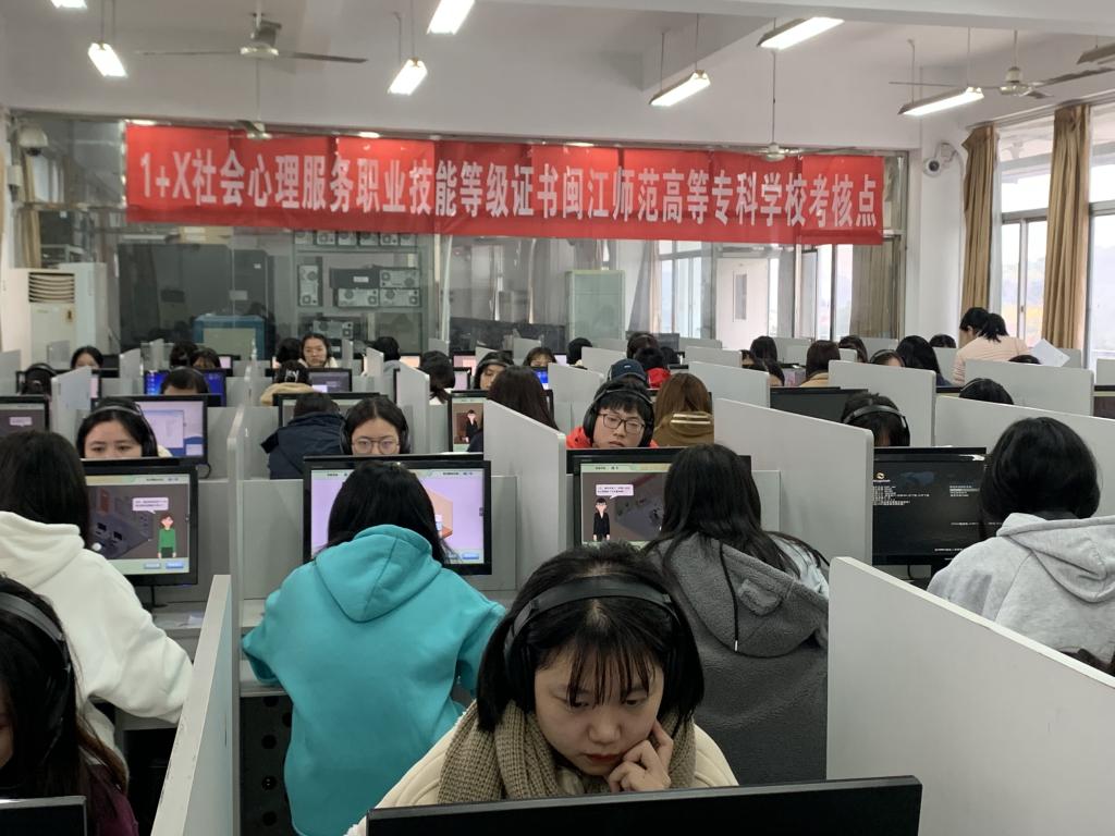 2021年12月25日,人文社科系在闽江师范高等专科学校仓山校区4号教学楼602机房举行了1+X“社会心理服务”职业技能等级证书(中级)全国统考。有80名考生参加本次考试,其中心理咨询专业的学生70名、社会工作专业的学生10名。人文社科系心理教研室谢姗姗主任,心理专业教师赖红梅、白丽、张一全担任本次考务工作