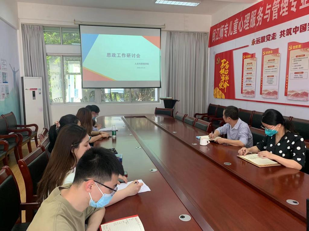 4月25日,人文与管理学院学工团队在3号楼会议室召开本月第二次学工工作研讨会。会议由人文与管理学院团委书记黄益群主持,院党总支书记林朝阳以及全体辅导员出席本次会议。