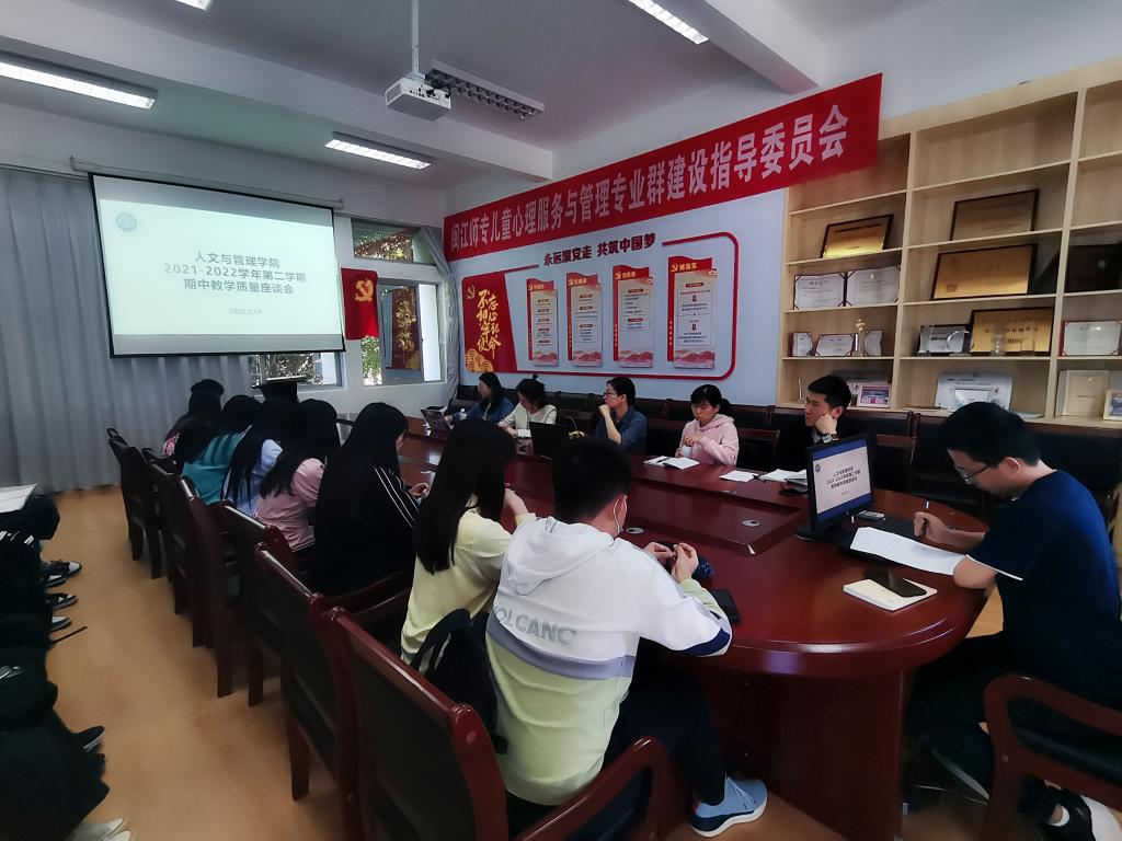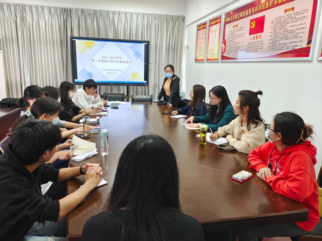 为进一步提升教育教学质量,深化教学改革,落实立德树人的根本任务。5月,人文与管理学院分别于海口校区、仓山校区开展期中教学质量座谈会。参加座谈会的有人文与管理学院副院长刘少艾、各专业教研室主任及教师代表、综合科干事王颖秋、21级辅导员周海英、教学秘书黄飞以及各班学生干部代表。