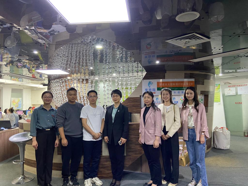 为进一步深化产教融合,拓宽就业渠道,扎实推进“访企拓岗促就业”专项行动。2022年5月25日下午,校党委委员陈群率人文与管理学院副院长陈勤(主持工作)、副院长刘少艾及导游专业教师一行赴福建光大旅行社有限公司走访调研。