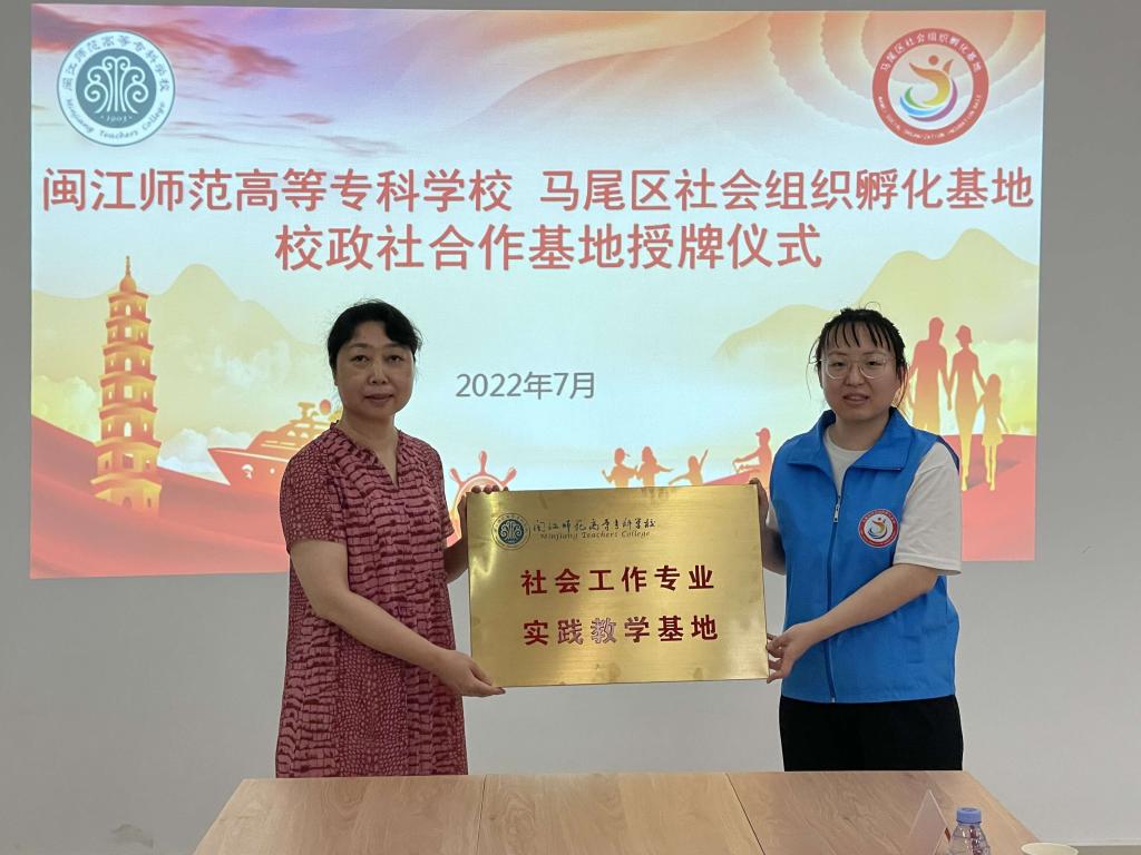 座谈会后进行了实训基地授牌仪式,由陈强副校长和陈勤副院长分别向马尾区民政局和马尾社会组织孵化基地进行授牌。