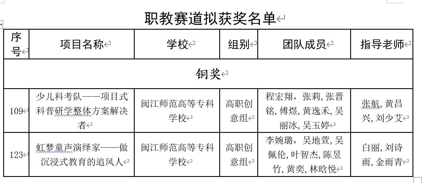 近日,福建省教育厅公布了第八届福建省“互联网+”大学生创新创业大赛各类奖项获奖名单,经过校赛选拔、省赛网评,人文与管理学院《少儿科考队——项目式科普研学整体方案解决者》和《虹梦童声演绎家——做沉浸式教育的追风人》两个项目荣获高职创意组铜奖。