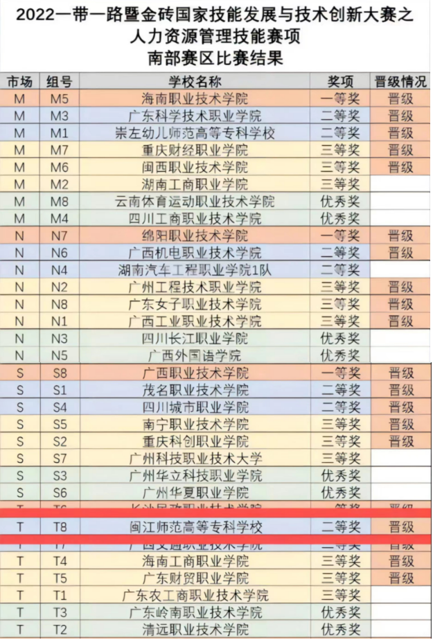 近日,在金砖国家技能发展与技术创新大赛组委会、一带一路暨金砖国家技能发展国际联盟主办的2022一带一路暨金砖国家技能发展与技术创新大赛人力资源管理技能赛项(高职组)区域赛中,我院行政管理专业教师游燕、吴姗姗指导的李怡欣、邹叶芝、陈亿萍团队,从南方赛区72支代表队中脱颖而出,荣获二等奖,顺利入围将于今年11月举行的国际赛事!