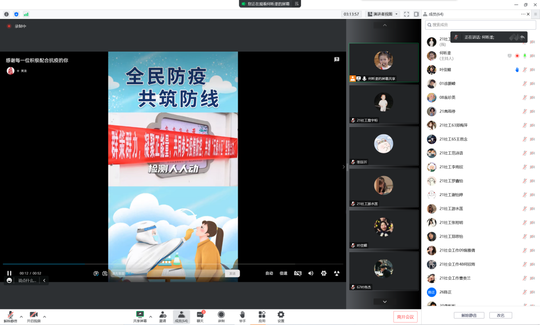 在2022级的班会上,通过组织同学们分享自己的在校日常,叙说自己的感受和烦恼,班主任们积极回应同学们的感受,鼓励大家共同携手攻克难关,每一个配合防疫工作的我们,守护的都是我们平凡而又珍贵的生活。