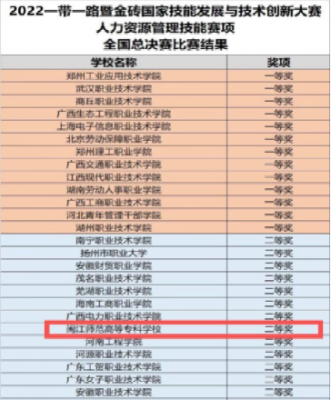 11月12日,由金砖国家工商理事会、一带一路暨金砖国家技能发展国际联盟、中国科协一带一路暨金砖国家技能发展与技术创新培训中心主办的2022一带一路暨金砖国家技能发展与技术创新大赛人力资源管理技能赛项(高职组)全国总决赛盛大开幕。本次总决赛共有来自全国各地的百余支参赛队伍同台竞技,经过激烈比拼,我院行政管理专业教师游燕、吴姗姗指导的李怡欣、邹叶芝、陈亿萍团队,最终喜获全国总决赛二等奖。